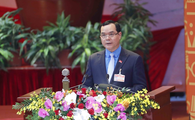 Đồng chí Nguyễn Đình Khang, Ủy viên Trung ương Đảng, Bí thư Đảng đoàn, Chủ tịch Tổng Liên đoàn Lao động Việt Nam trình bày tham luận. (Nguồn: TTXVN)