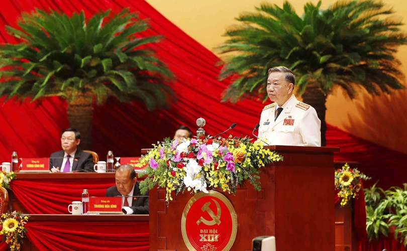 Đại tướng Tô Lâm, Ủy viên Bộ Chính trị, Bí thư Đảng ủy Công an Trung ương, Bộ trưởng Bộ Công an trình bày tham luận. (Nguồn: TTXVN)