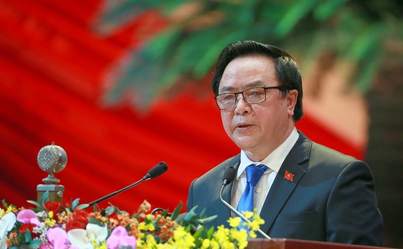Đồng chí Trần Đức Quận, Bí thư Tỉnh ủy, Chủ tịch HĐND tỉnh Lâm Đồng tham luận tại Đại hội. (Nguồn: TTXVN)