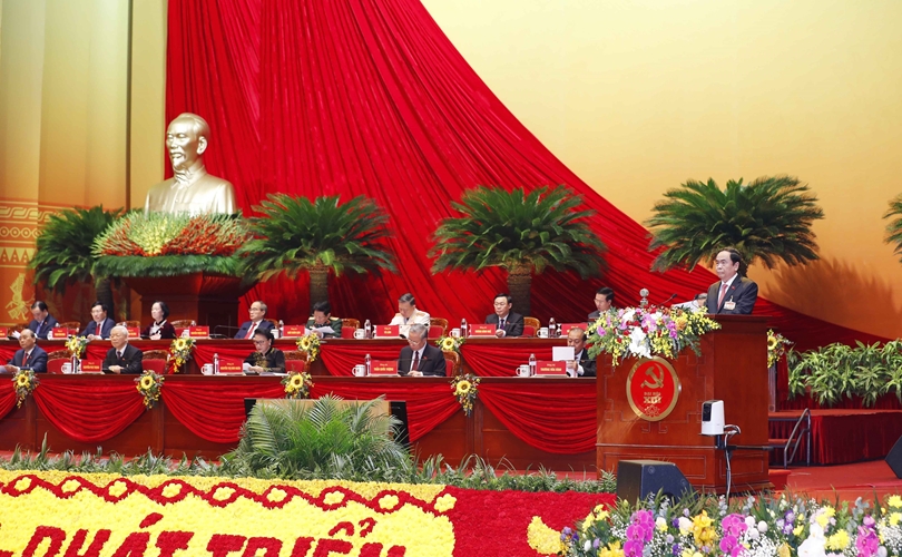 Đồng chí Trần Thanh Mẫn, Bí thư Trung ương Đảng, Chủ tịch Ủy ban Trung ương Mặt trận Tổ quốc Việt Nam trình bày tham luận. (Nguồn: TTXVN)