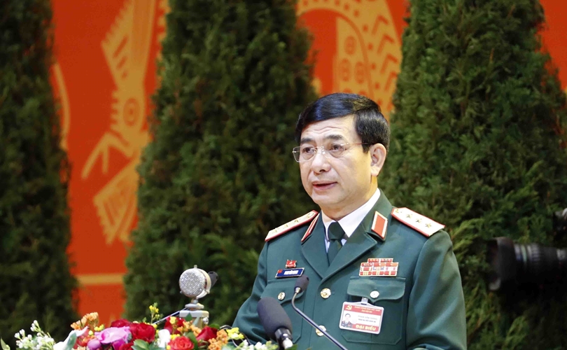 Thượng tướng Phan Văn Giang, Ủy viên Thường vụ Quân ủy Trung ương, Tổng tham mưu trưởng Quân đội nhân dân Việt Nam, Thứ trưởng Bộ Quốc phòng trình bày tham luận. (Nguồn: TTXVN)