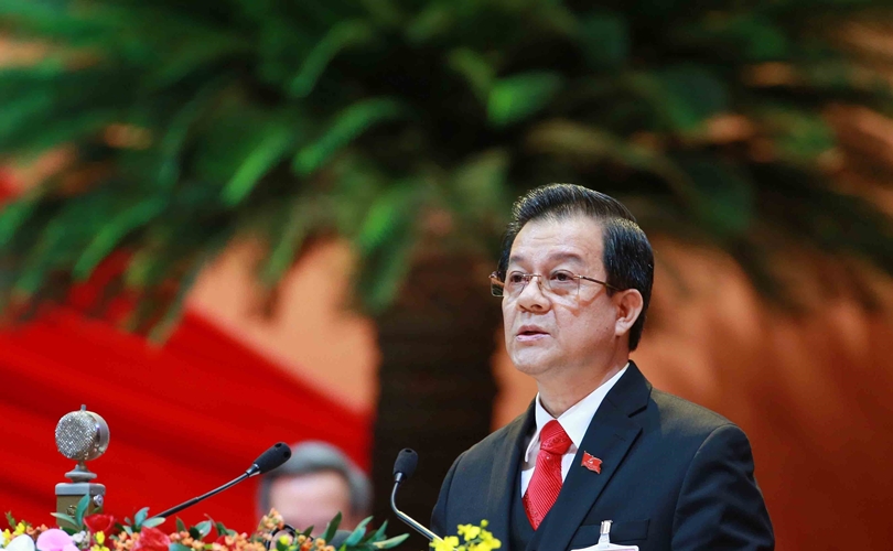 Đồng chí Đinh Tiến Dũng, Ủy viên Trung ương Đảng, Bộ trưởng Bộ Tài chính tham luận tại Đại hội. (Nguồn: TTXVN)