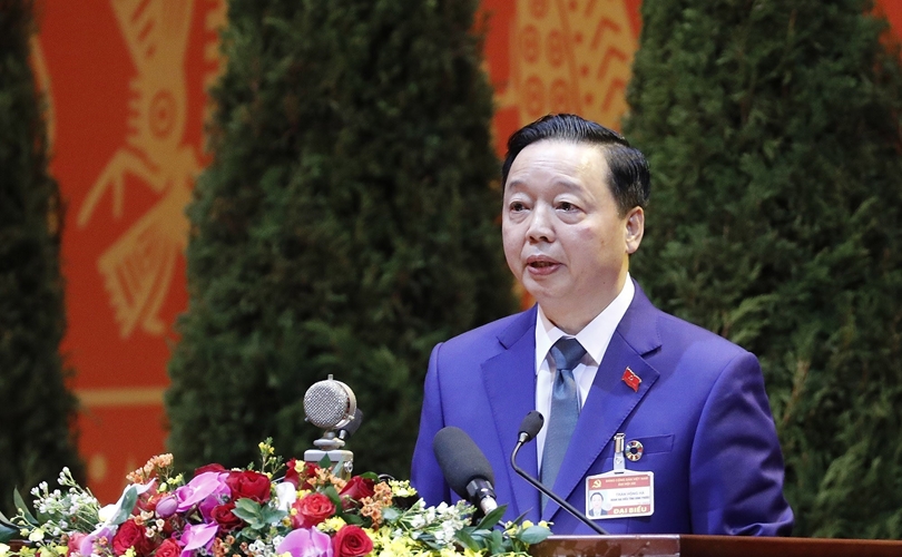 Đồng chí Trần Hồng Hà, Ủy viên Trung ương Đảng, Bộ trưởng Bộ Tài nguyên và Môi trường trình bày tham luận. (Nguồn: TTXVN)