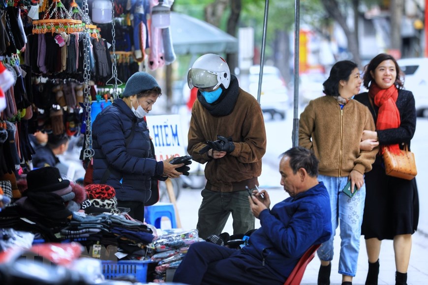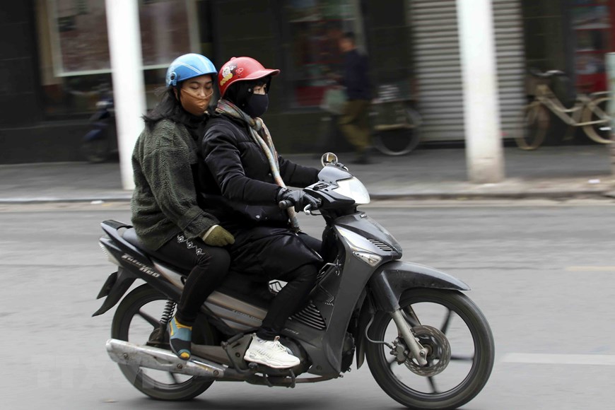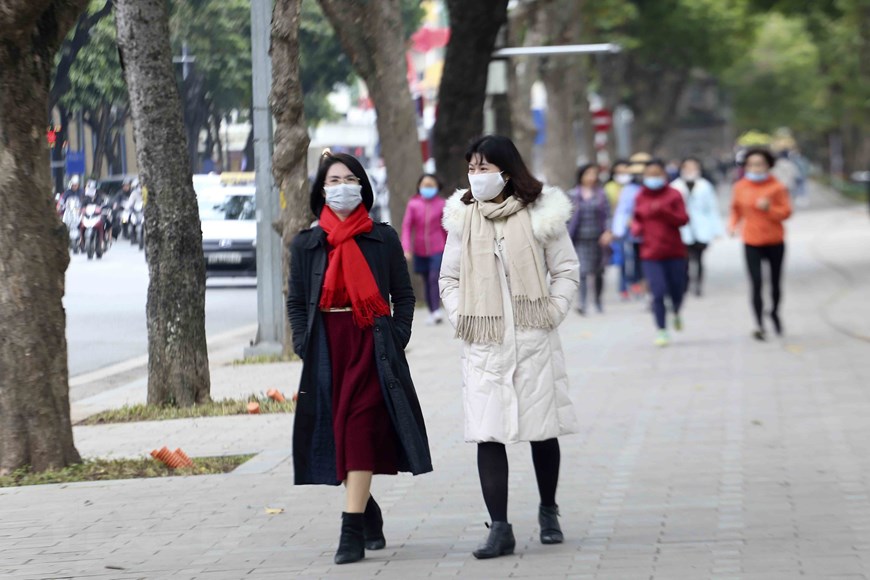 Không khí lạnh tràn về mạnh, trời trở rét đậm khiến ai nấy ra đường đều phải mặc nhiều lớp áo, khăn quàng và đeo khẩu trang.
