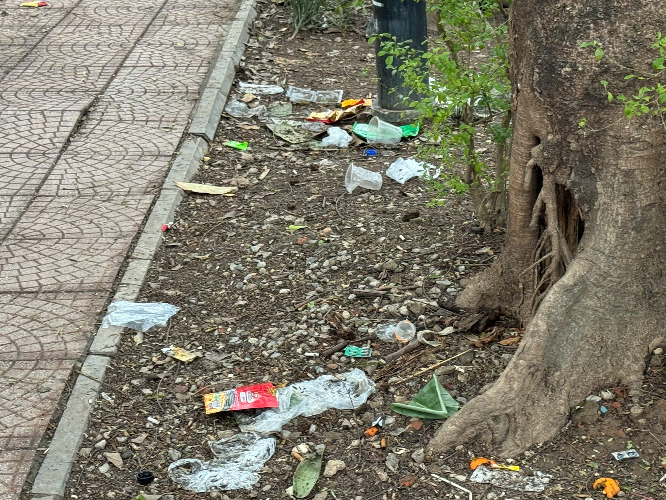 Tình trạng xả rác bừa bãi vẫn thường·diễn ra dù có nhiều thùng rác được bố trí.