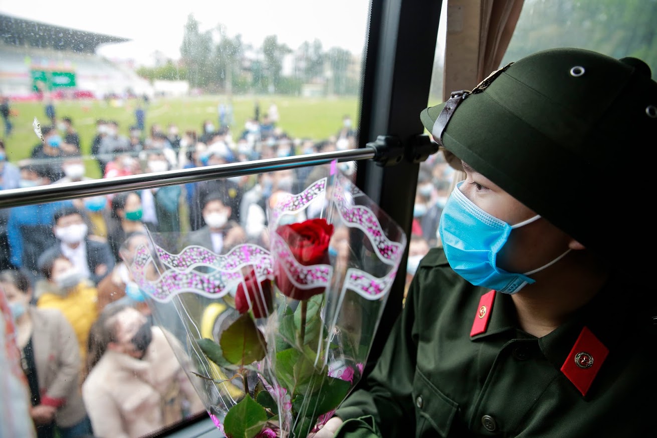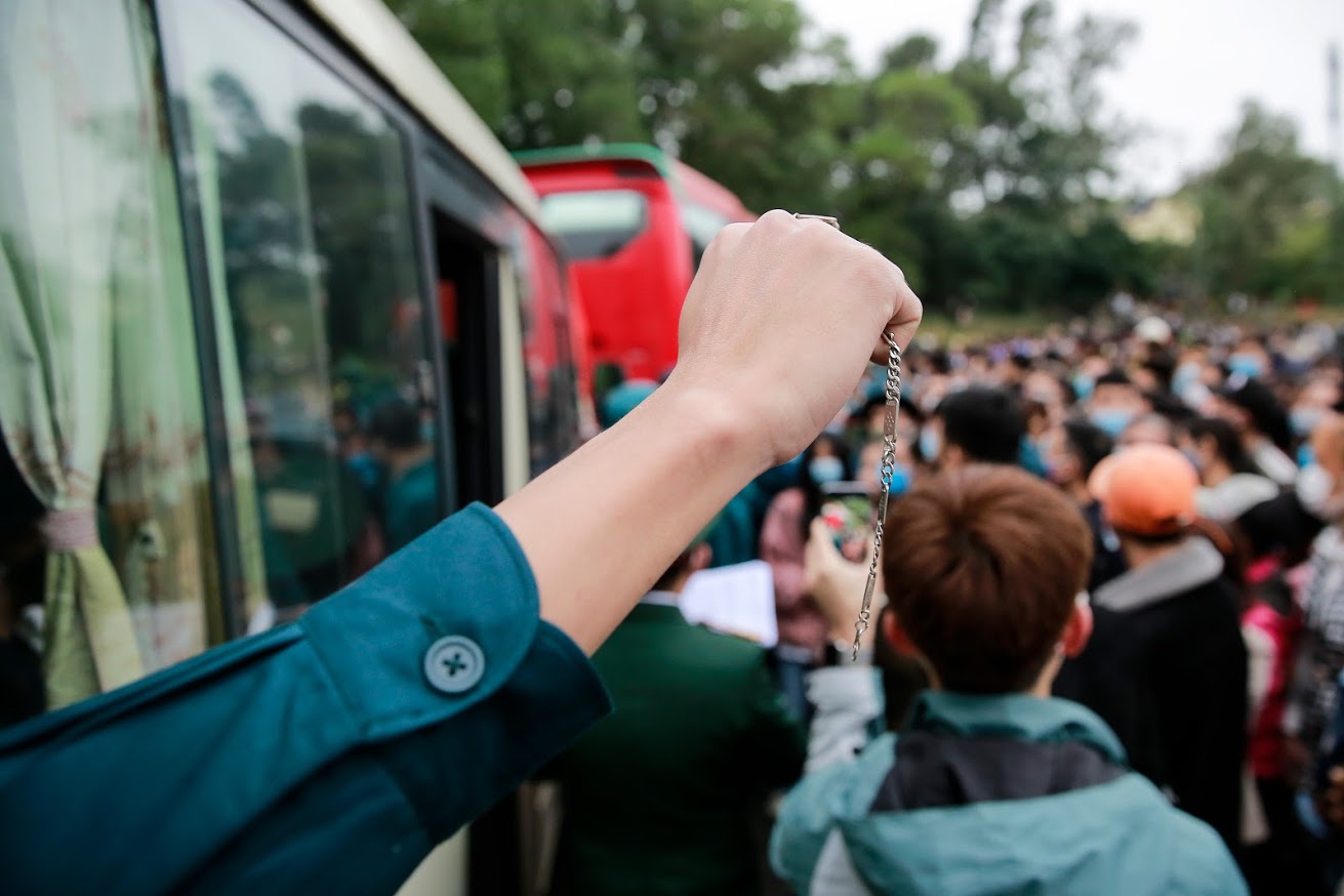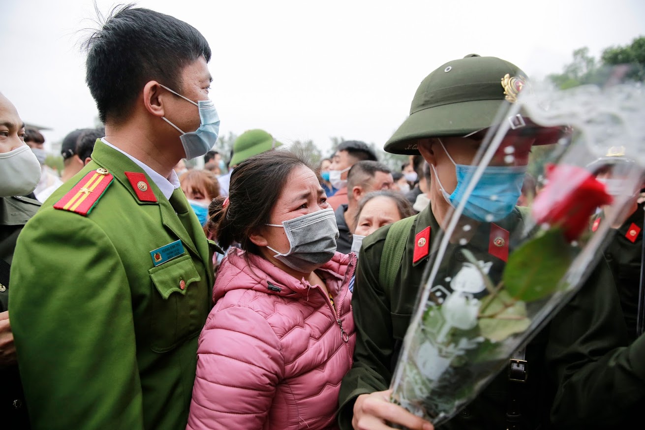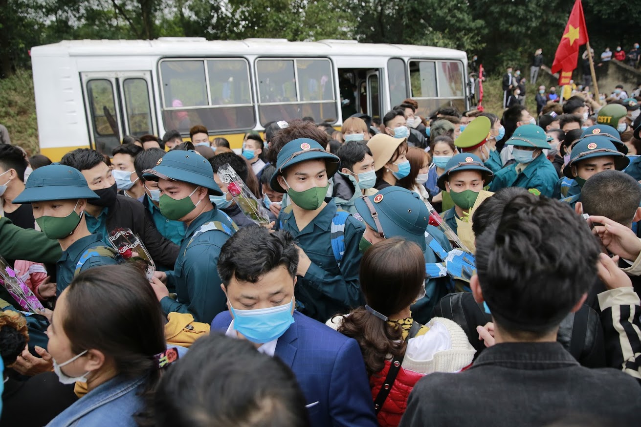 (BVPL) - Sáng nay, ngày 27/2, toàn thành phố Hà Nội tiến hành lễ giao nhận quân năm 2021. PV ghi lại một số hình ảnh buổi tiễn biệt xúc động của các tân binh và người thân của họ ở huyện Sóc Sơn, thành phố Hà Nội.