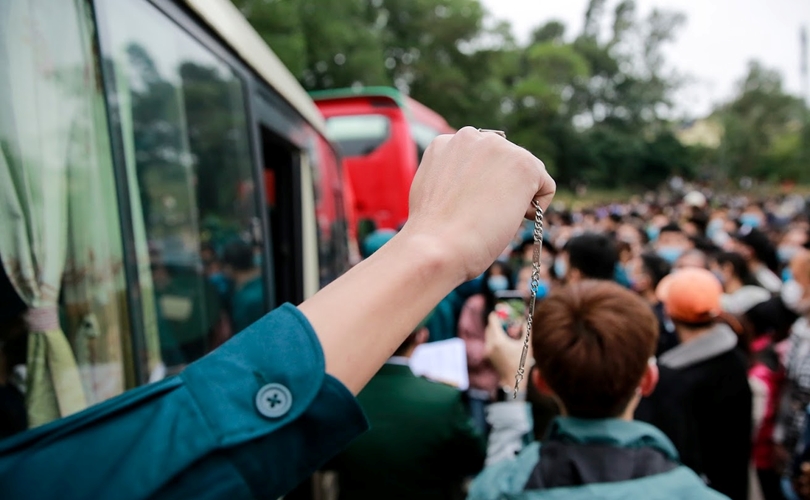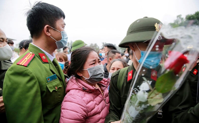 Một người mẹ nghẹn ngào trước giờ chia tay con trai.
