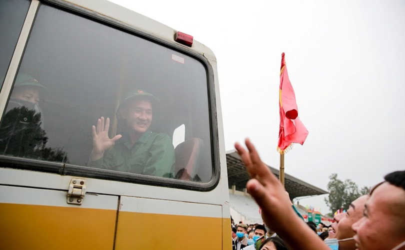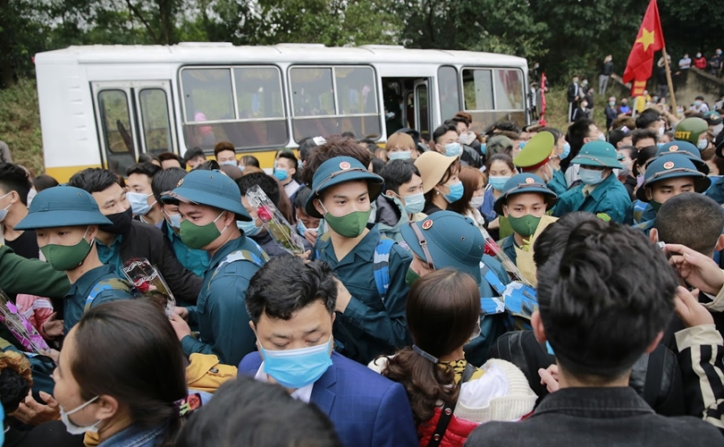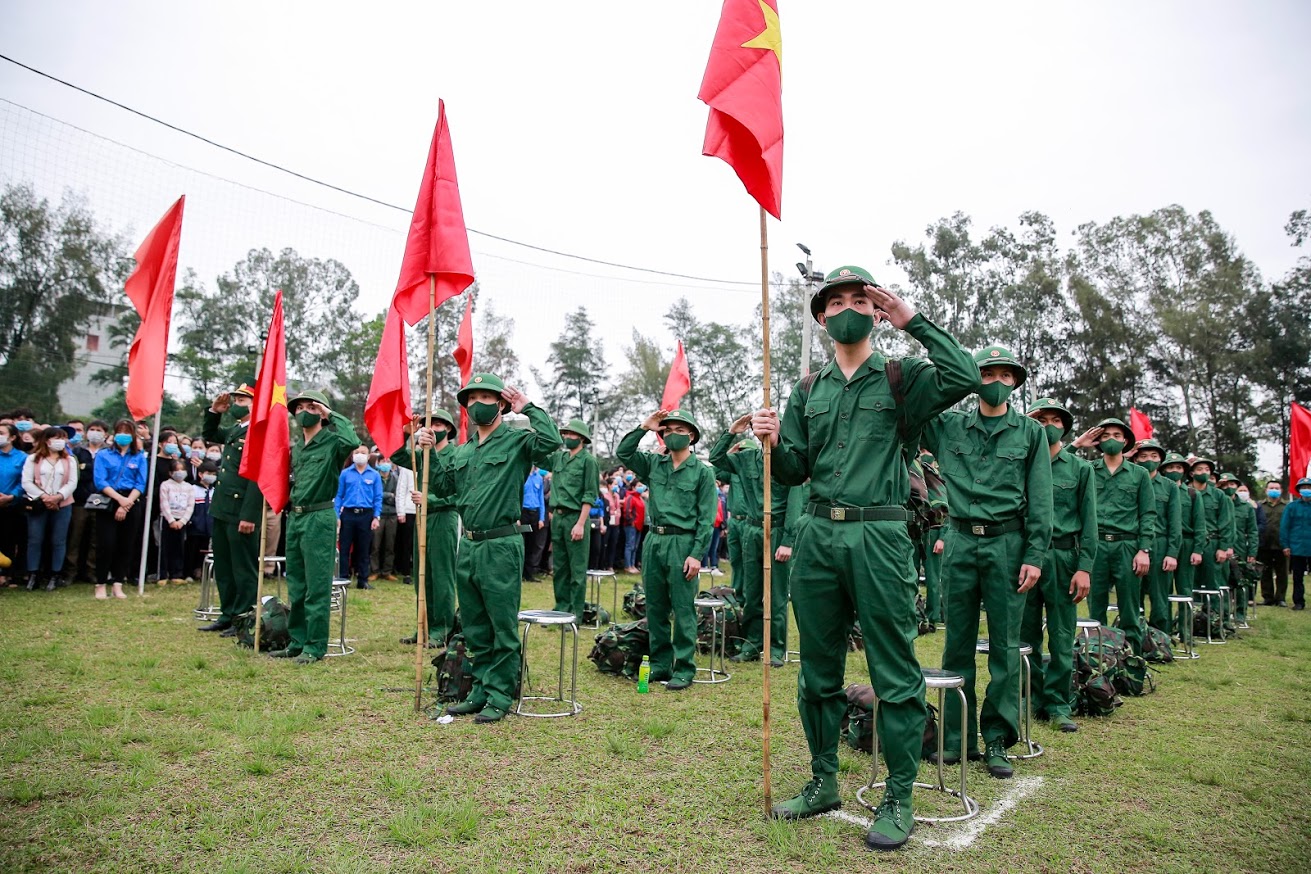 Các tân binh đội ngũ chỉnh tề sẵn sàng lên đường nhập ngũ.