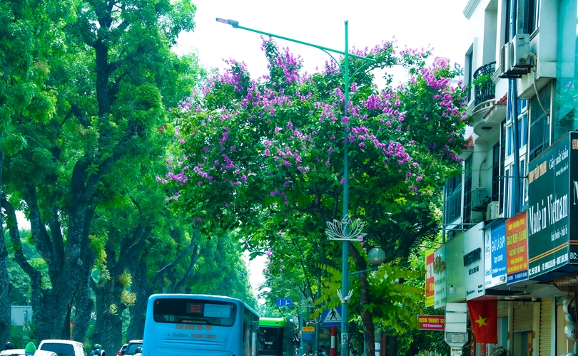 Với dáng vẻ thanh thoát và khả năng tạo bóng mát, cây bằng lăng trở thành lựa chọn quen thuộc trên nhiều con phố Hà Nội như Kim Mã, Đinh Tiên Hoàng, Thợ Nhuộm...