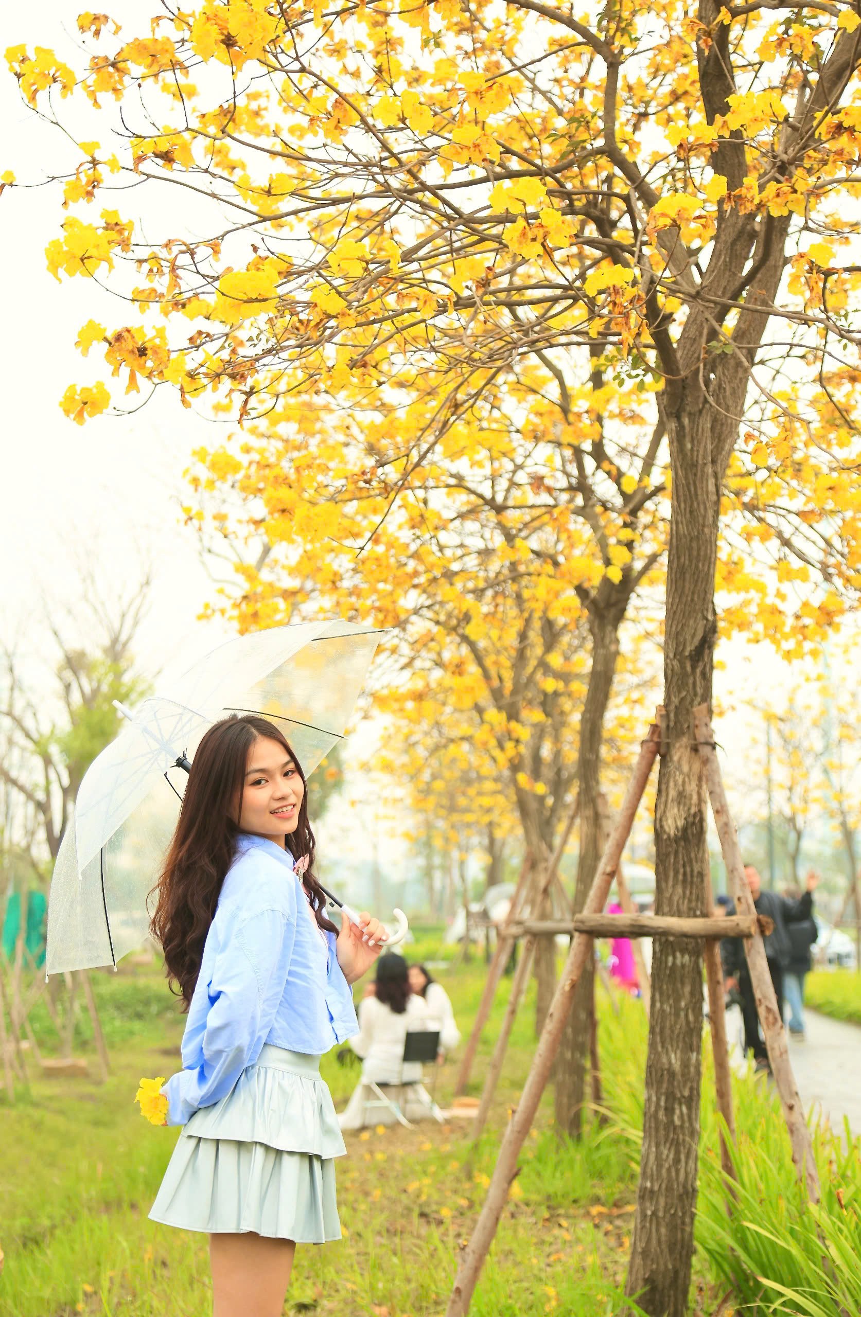 Sắc vàng rực rỡ của loài hoa này nhanh chóng trở thành điểm thu hút, khiến nhiều nàng thơ tìm đến tạo dáng và chụp ảnh.