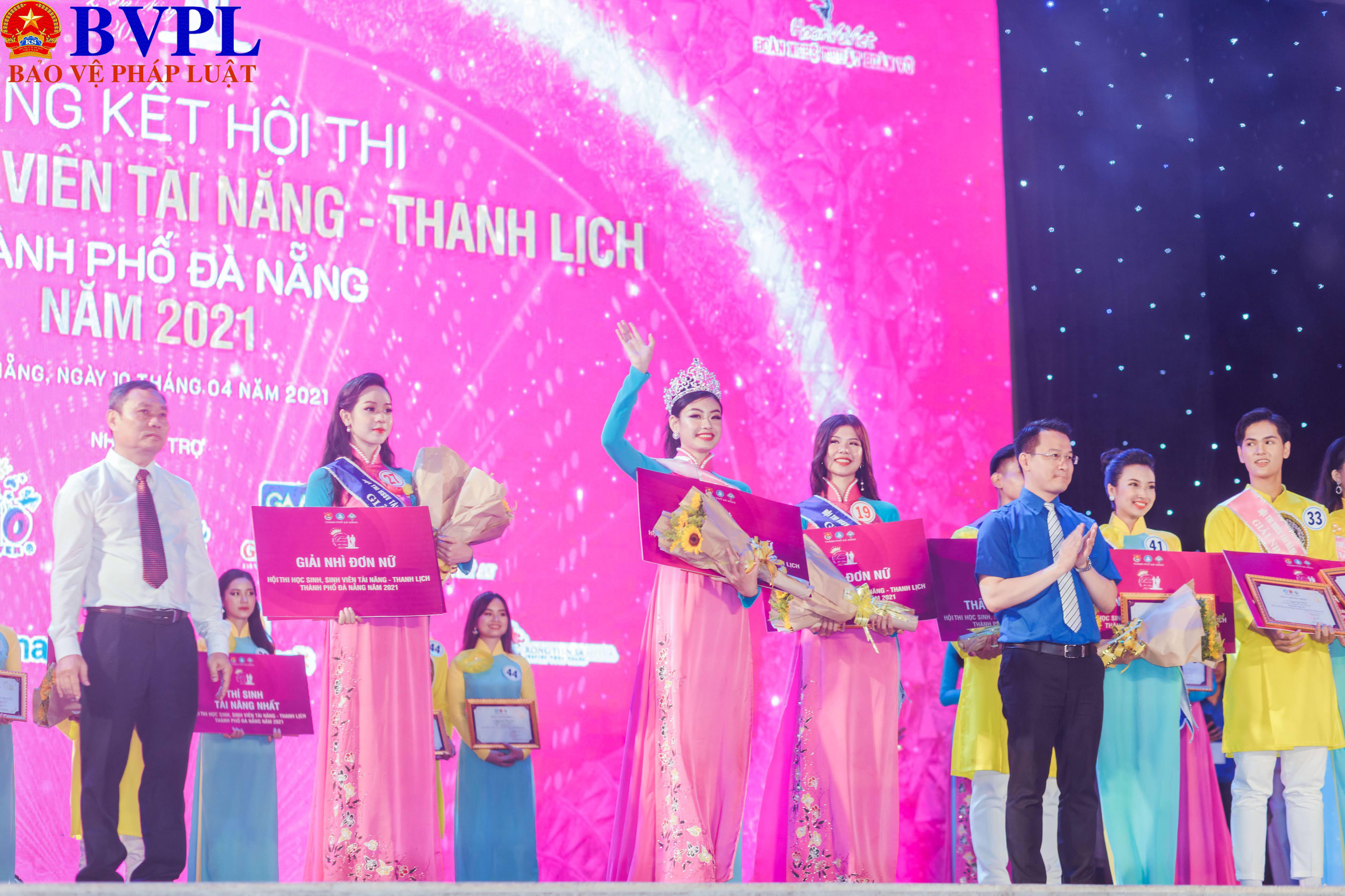 Thí sinh Phạm Tâm Anh Thy (Trường THPT Phan Châu Trinh) giành giải nhất đơn nữ, Anh Thy sẽ được đặc cách vào vòng chung kết cuộc thi Hoa khôi Du lịch Đà Nẵng năm 2021.