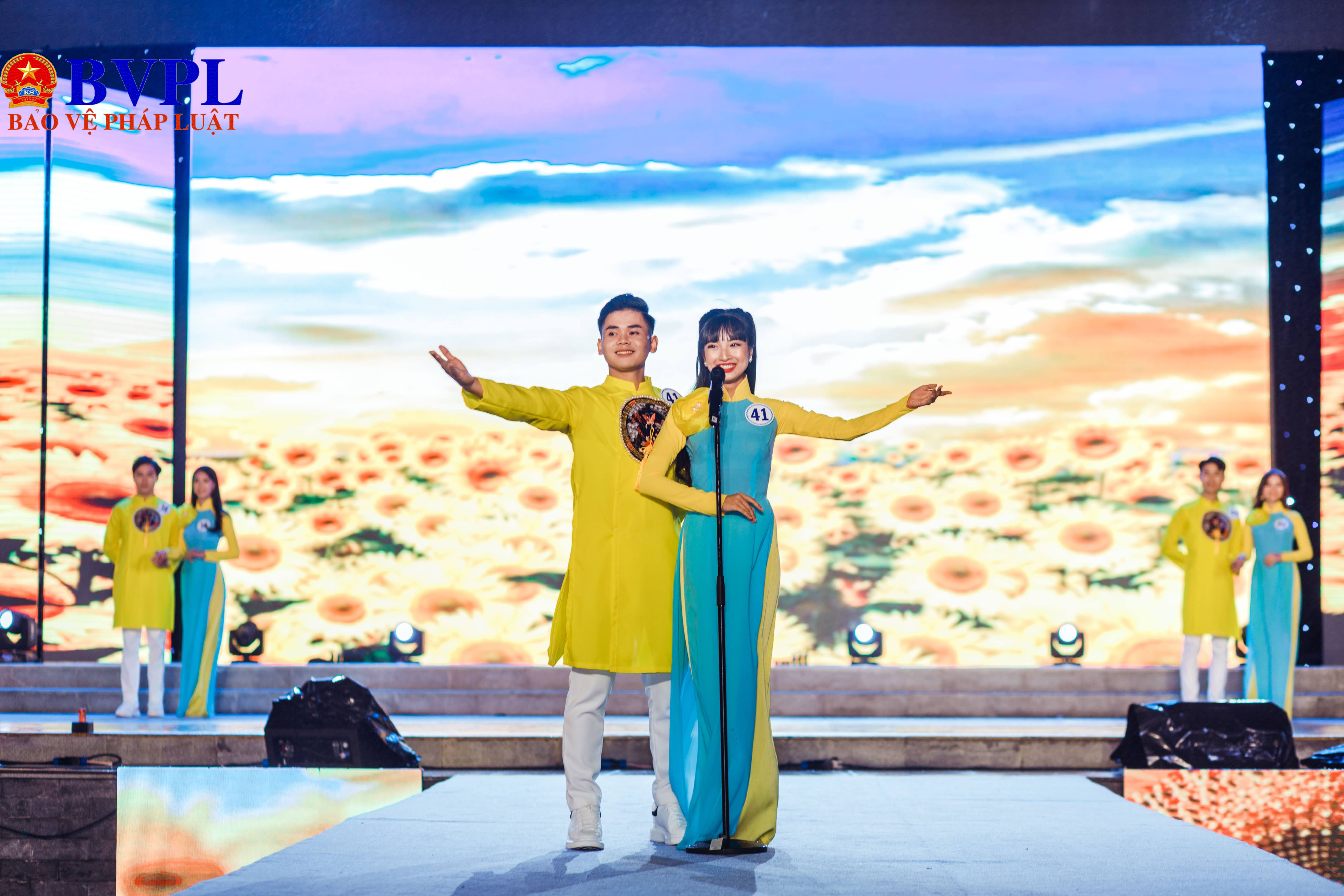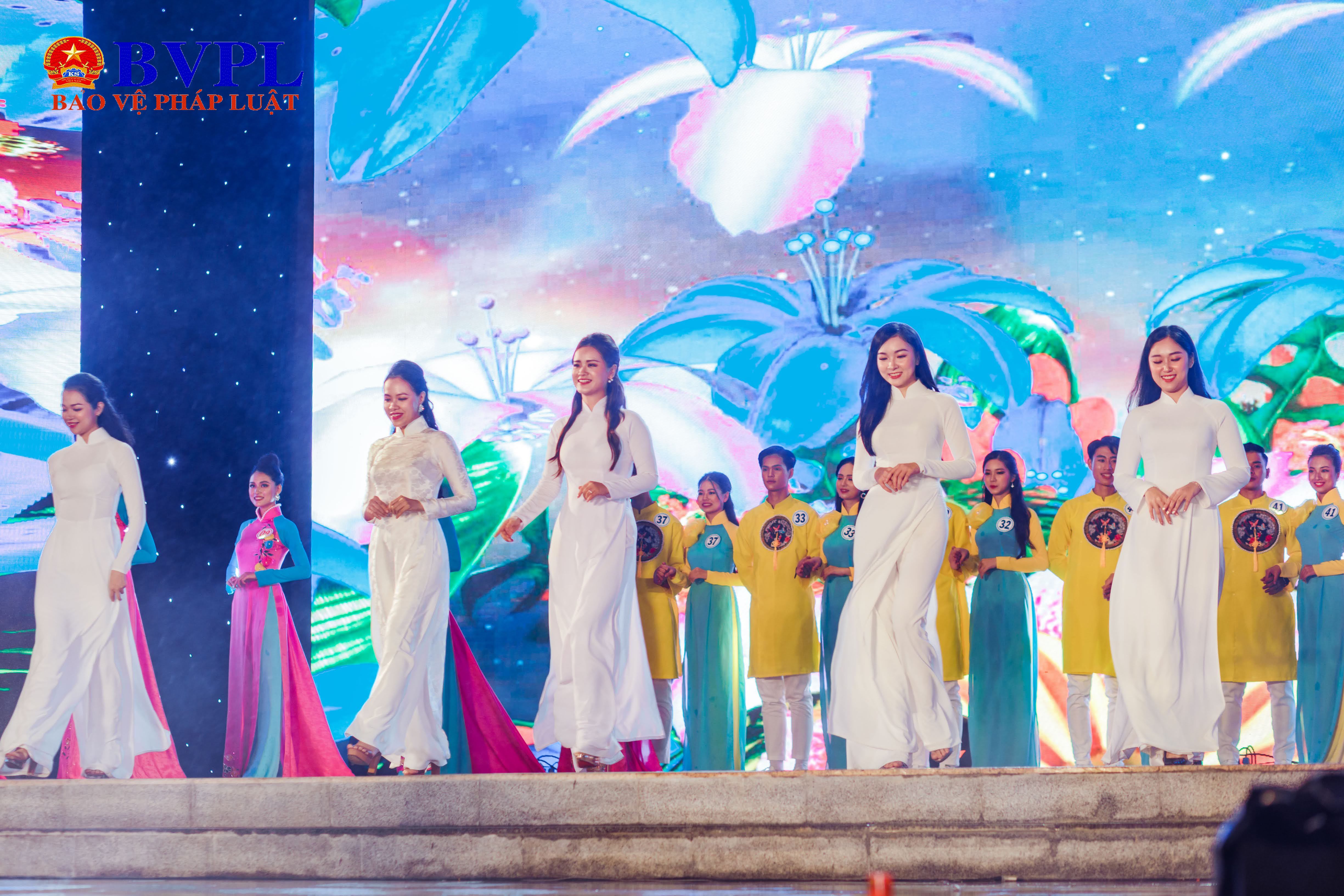 (BVPL) - 14 thí sinh hạng mục đơn nữ và 6 cặp thí sinh nam - nữ đến từ các trường THPT, ĐH, CĐ trên địa bàn Đà Nẵng đưa sắc trong tà áo dài truyền thống với kỹ năng trình diễn bài bản, duyên dáng, tôn vinh vẻ đẹp của trang phục dân tộc.
