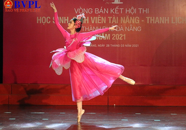 Thí sinh Phạm Thị Xuân Linh (Đại học Kĩ thuật Y Dược Đà nẵng) với tiết mục múa ballet: Sống như những đóa hoa.