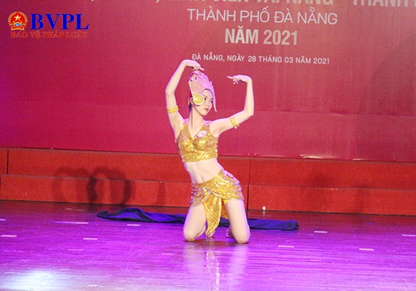 Phần dự thi của thí sinh Trương Thị Xuân Nữ (Cao đẳng Du lịch Đà Nẵng) với tiết mục múa apsara- vũ nữ chăm.