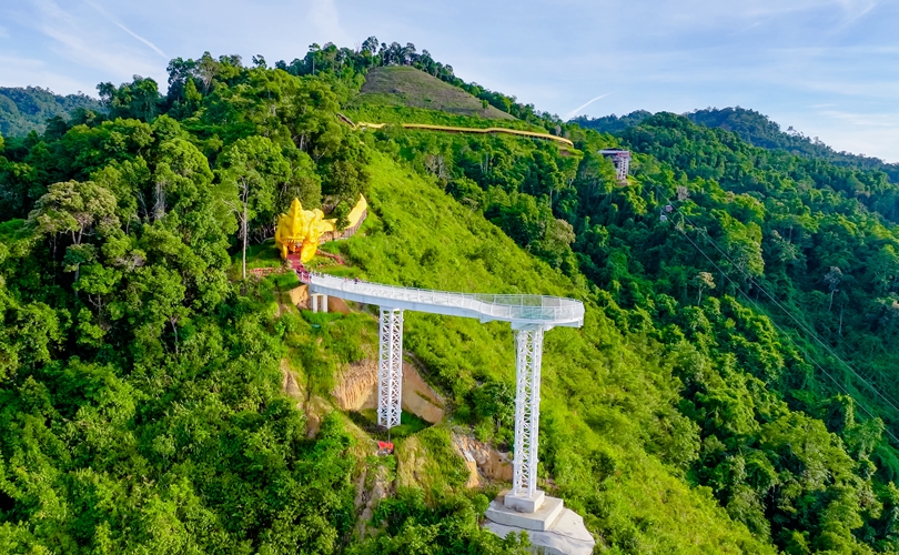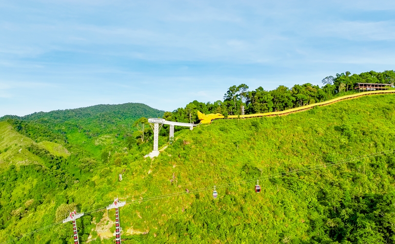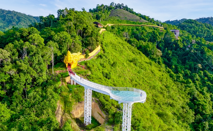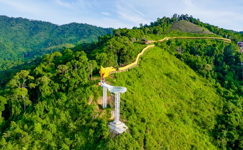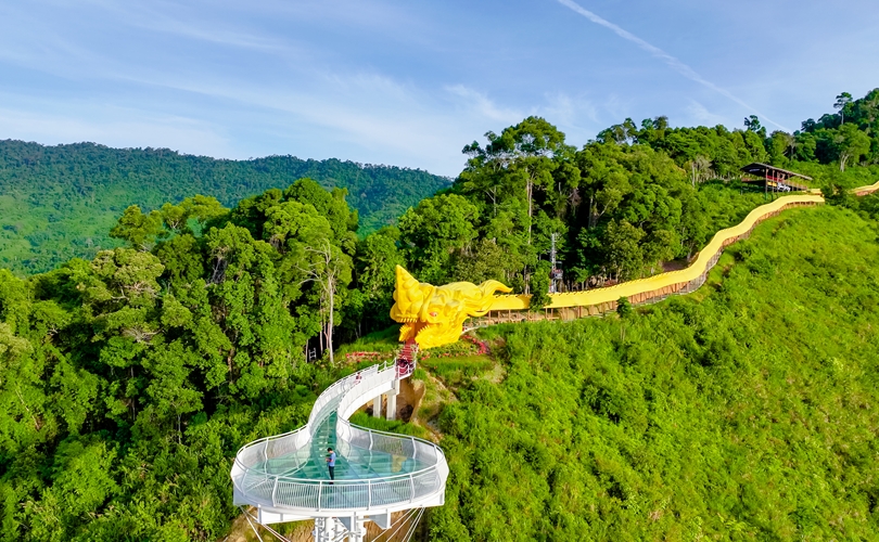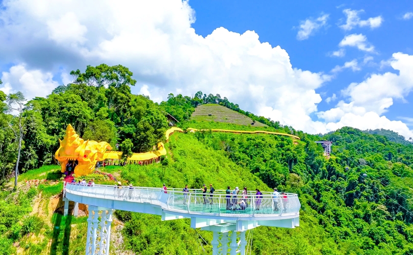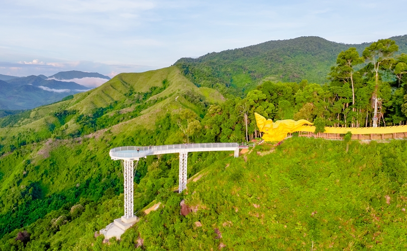 Hạng mục hành lang có mái che hình rồng vắt qua núi dài nhất Việt Nam là tổ hợp 2 công trình gồm hành lang mái che hình rồng và cầu kính.