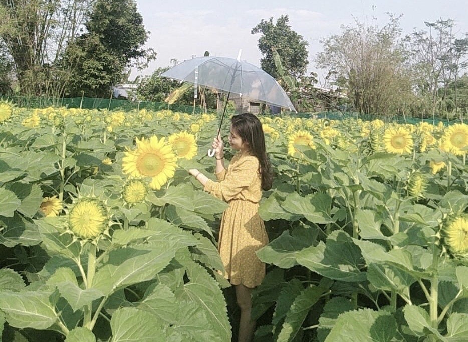 Cái hấp dẫn còn nằm ở không gian rộng lớn của vườn hoa. Bạn sẽ được tận hưởng cảm giác mình đang được đứng ở một nơi ngập tràn hương sắc của hoa hướng dương. Nếu đi hết cuối vườn hoa, bạn sẽ chạm ngay được đường chân trời, phía trên là mây xanh biếc,