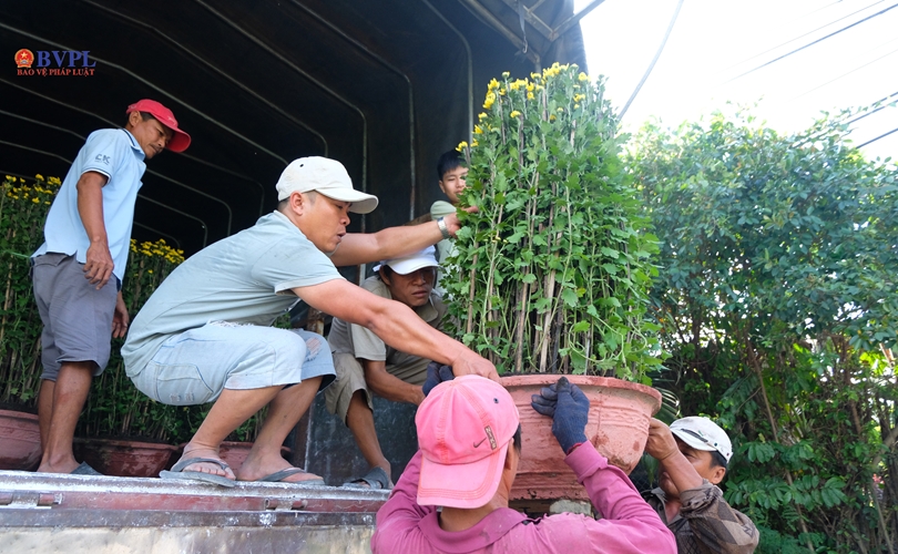 Hoa đang được bốc lên ô tô để vận chuyển vào thành phố Hồ Chí Minh.