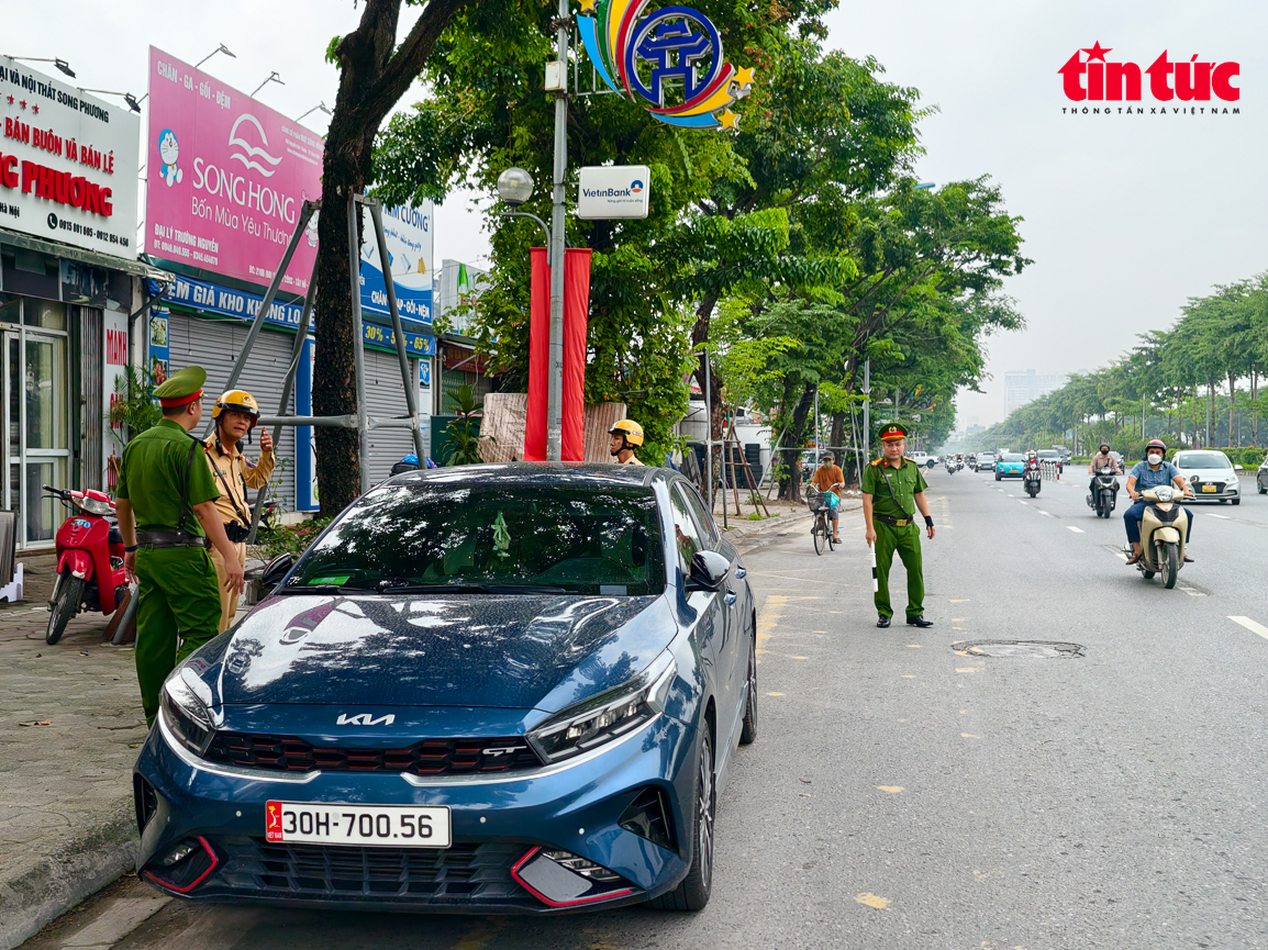 Ngày 28/7, Đội Cảnh sát giao thông (CSGT) số 2 (Phòng CSGT Hà Nội) phối hợp với Công an phường Tây Hồ tuần tra, xử lý ô tô dừng đỗ sai quy định trong làn hỗn hợp trên đường Võ Chí Công.