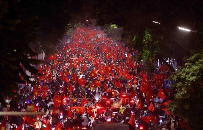 Người hâm mộ Thủ đô tràn ra đường ăn mừng chiến thắng của đội tuyển Việt Nam, đêm 5/1.