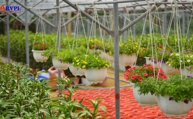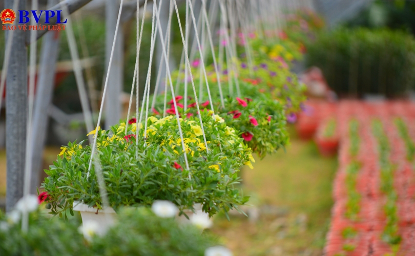 Các khu đất rộng lớn được phủ kín bởi hàng trăm chậu cây lớn nhỏ xếp thẳng hàng. Nhiều nhà lưới đã được dựng lên. Hệ thống ống nước, bóng đèn thắp sáng, nylon che phủ đã được lắp đặt hoàn chỉnh. Người trồng hoa đang bận rộn với việc tưới nước, bón phân…