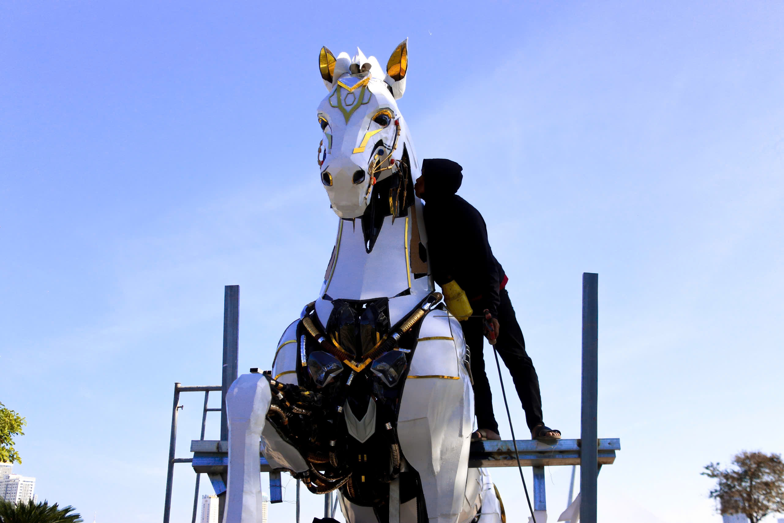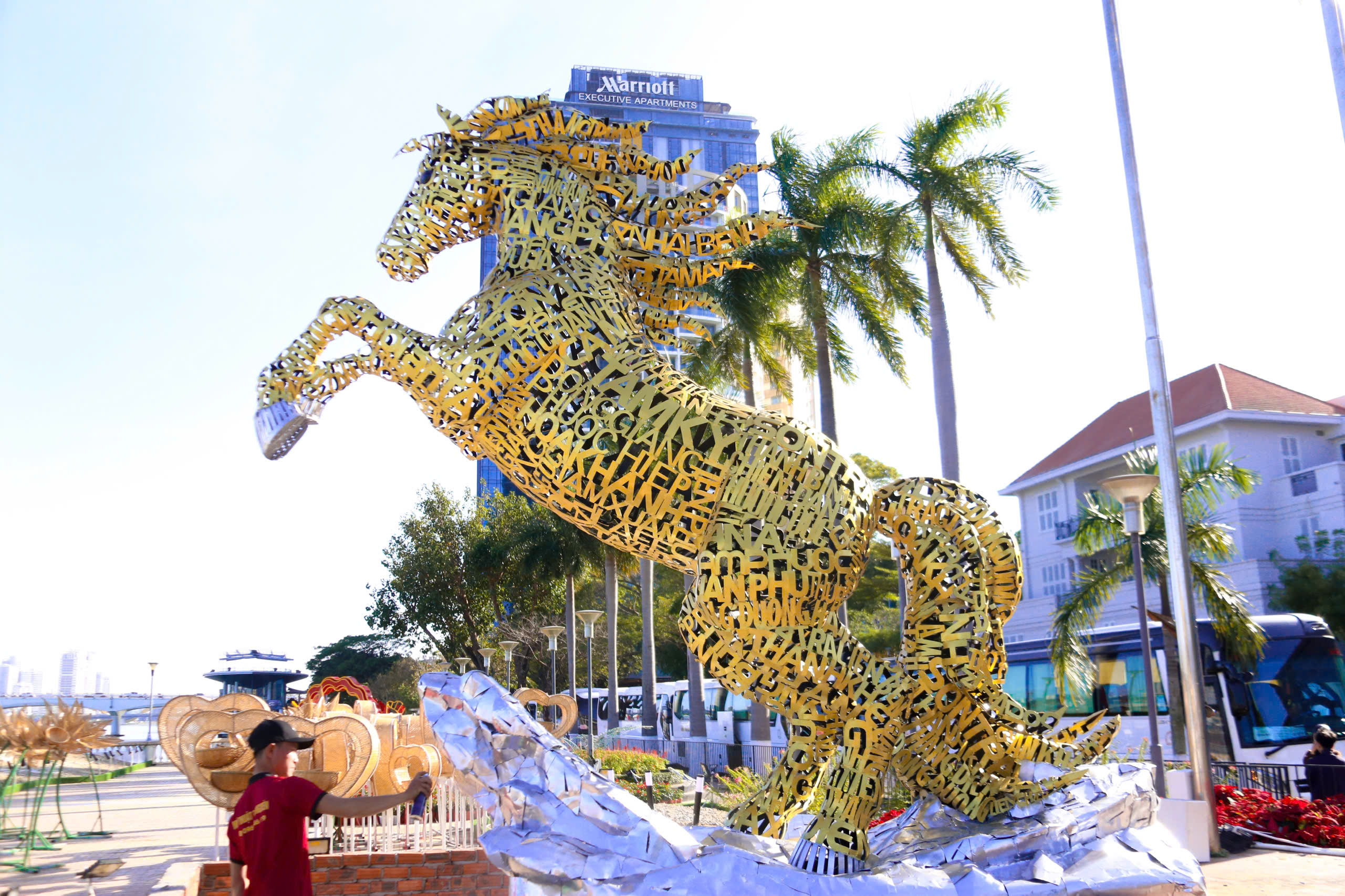 Đơn vị thi công đang gấp rút hoàn thiện linh vật ngựa phục vụ người dân, du khách dịp Tết.