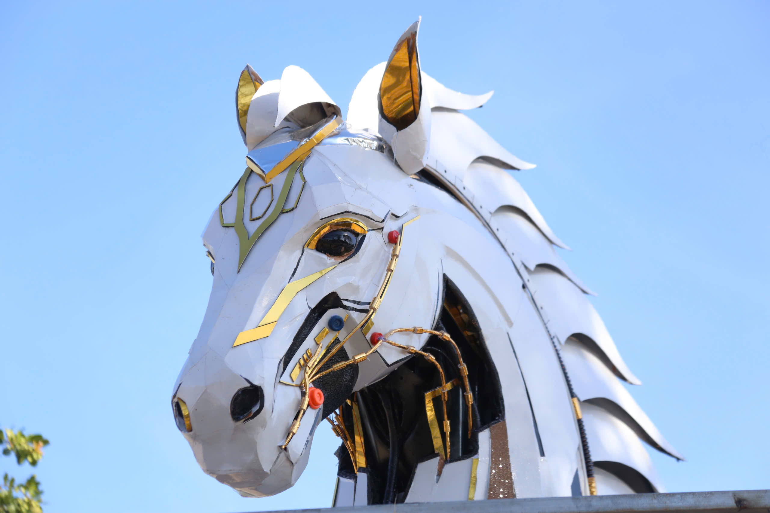 Linh vật ngựa được tạo hình công phu, cao khoảng 3 m.