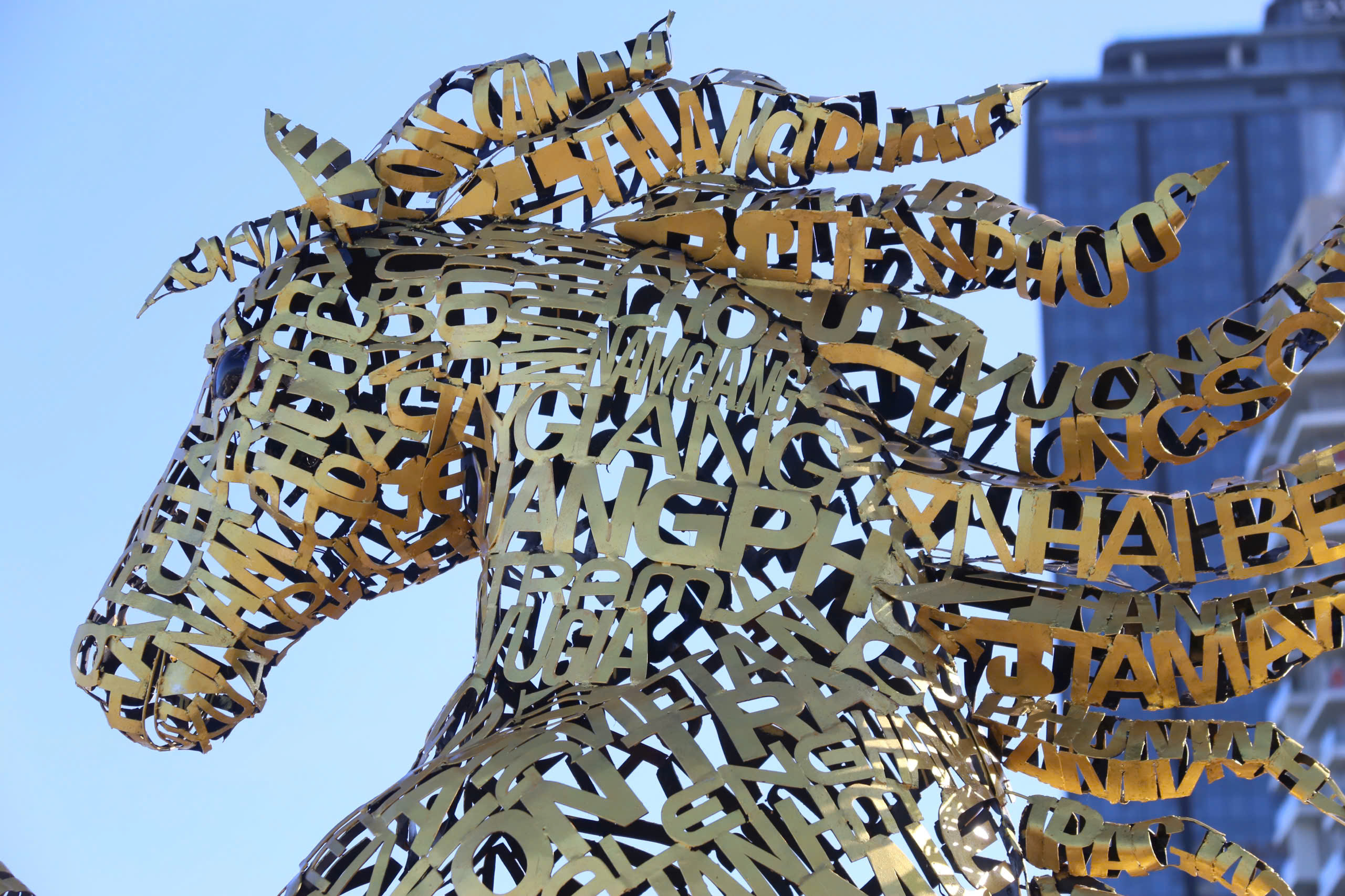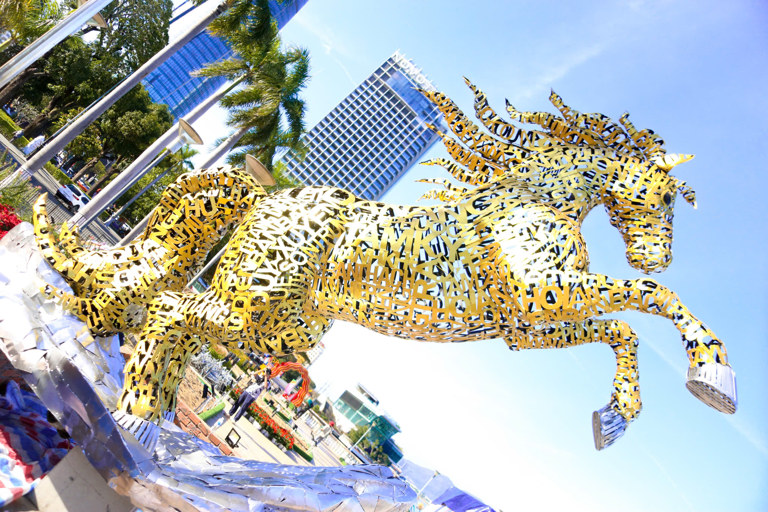 Linh vật ngựa được lắp đặt hệ thống chiếu sáng.