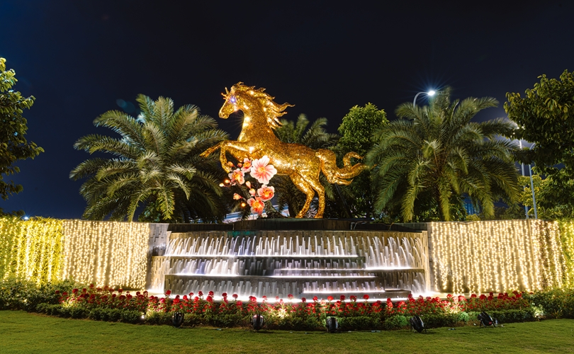 Không gian nhà ga quốc tế vốn hiện đại, khoáng đạt nay được phủ thêm sắc vàng ấm áp. Giữa dòng người qua lại, hình ảnh chú ngựa vươn mình mạnh mẽ, ánh lên dưới ánh đèn và mặt nước, mang lại cảm giác vừa trang nghiêm vừa gần gũi. Với nhiều hành khách, đó là khoảnh khắc dừng chân ngắn ngủi nhưng đủ để cảm nhận tinh thần Tết đang đến rất gần.