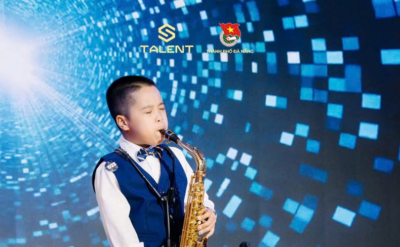 Thí sinh Nguyễn Lương Duy Khoa với tiết mục Saxophone.
