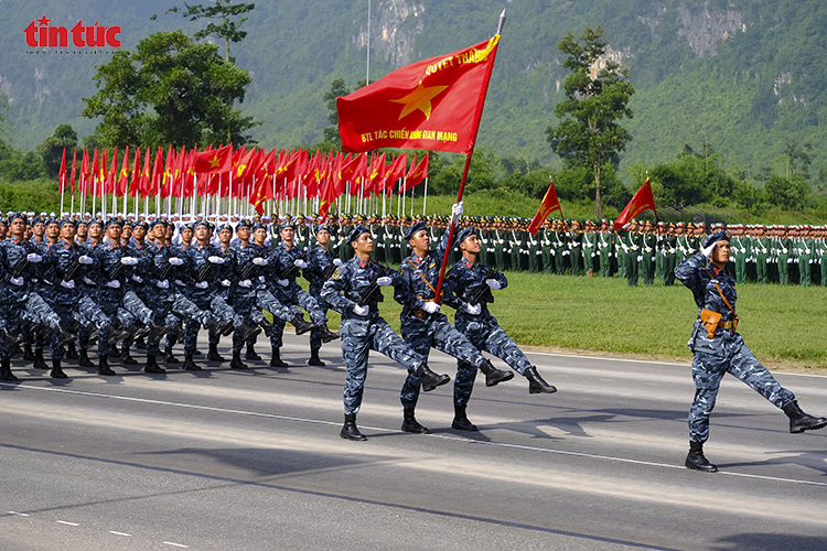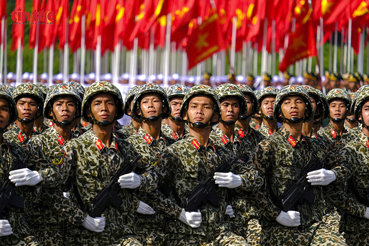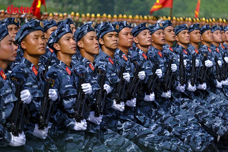 Từ sáng sớm, lực lượng diễu binh diễu hành của Quân đội và Công an tổng hợp luyện sau giai đoạn tập luyện và hợp luyện cụm gồm 43 khối đi, 18 khối đứng với hơn 15.600 quân nhân.