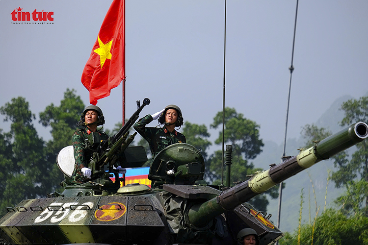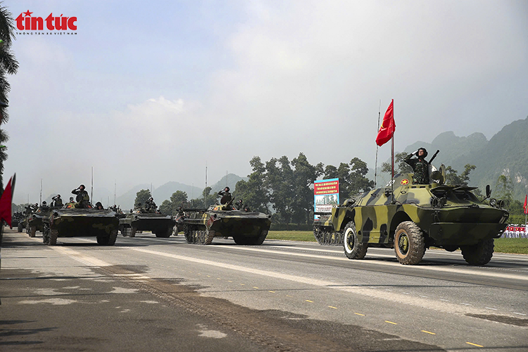 Sau màn diễu binh của các khối đi là khối xe pháo quân sự trên đường hành tiến.
