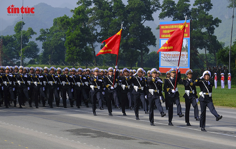 Khối sĩ quan Hải quân nhân dân Việt Nam sải bước tại buổi tổng hợp luyện.