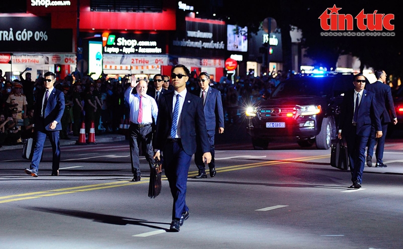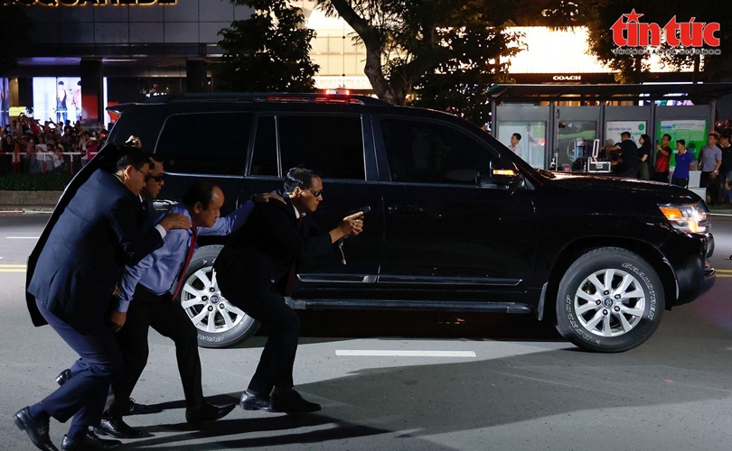 Trong tích tắc, các chiến sĩ Cảnh vệ đã dùng nghiệp vụ đưa yếu nhân lên xe rời khỏi khu vực không an toàn.