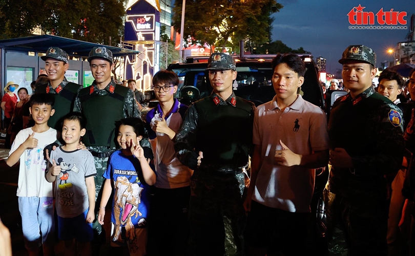 Sau màn trình diễn ấn tượng, các trẻ em, người dân TP Hồ Chí Minh đã đến giao lưu, ghi lại những khoảnh khắc đáng nhớ với các bộ, chiến sĩ lực lượng cảnh vệ.