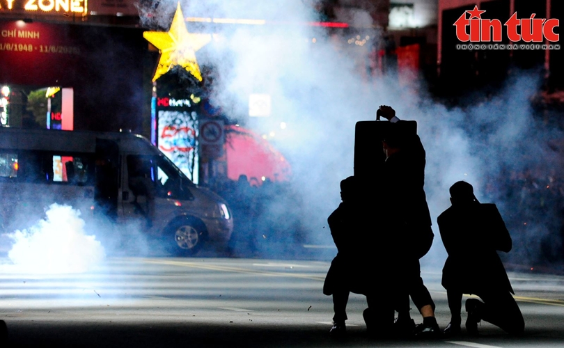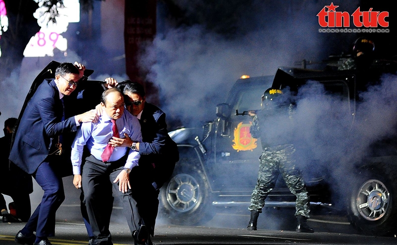 Trong tích tắc, lực lượng Cảnh vệ đã triển khai đội hình, dùng cặp chống đạn che chắn cho yếu nhân, đồng thời các chiến sĩ khác đồng loạt rút súng từ vali đặc chủng để phản công.