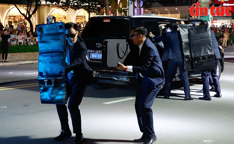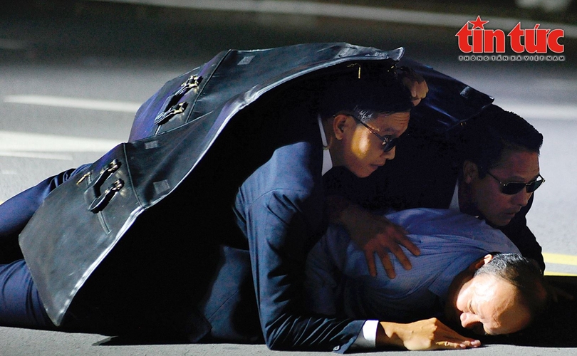 Khi thấy không an toàn, lực lượng Cảnh vệ dùng cặp chống đạn làm lá chắn bảo vệ cho yếu nhân.