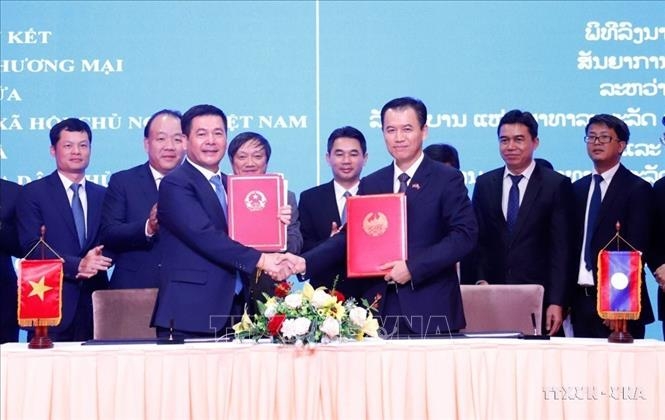 Bộ trưởng Bộ Công Thương Nguyễn Hồng Diên và Bộ trưởng Bộ Công Thương Lào Malaithong Kommasith ký Hiệp định thương mại Việt Nam - Lào mới, nhằm tạo điều kiện thuận lợi hơn nữa cho hoạt động xuất nhập khẩu hàng hóa, góp phần tăng cường quan hệ thương mại giữa hai nước.