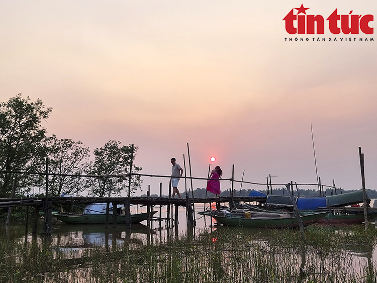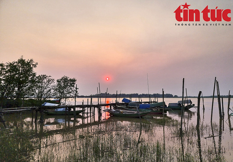 Khi hoàng hôn buông xuống, cũng là thời điểm đẹp nhất của bến Giang Đình (huyện Nghi Xuân, Hà Tĩnh) trên dòng sông Lam...