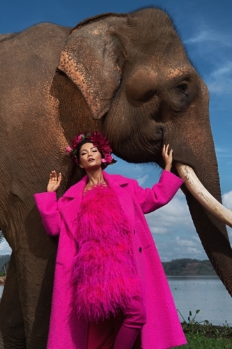 Sắc hồng rực rỡ mang đến diện mạo đầy tươi trẻ cho nàng hậu, như chút vấn vương, như lời tự tình đầy ngọt ngào trên chính vùng đất quê hương.