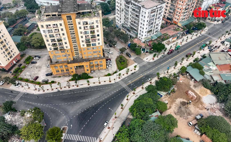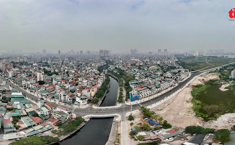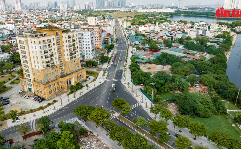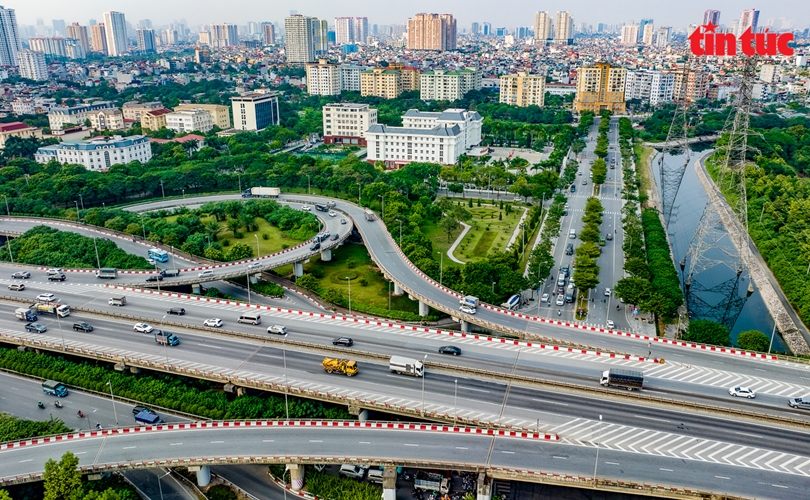 Từ nút giao cao tốc Pháp Vân-Cầu Giẽ-Vành Đai 3 nhìn về trung tâm hành chính quận Hoàng Mai và tuyến đường 500 tỷ đồng vừa thông xe.