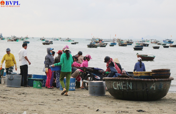 Dọc bãi biển Mân Thái (quận Sơn Trà, TP Đà Nẵng), hàng chục thuyền thúng khai thác của bà con ngư dân liên tiếp về bờ cập bờ từ sáng sớm.(ảnh: LT)