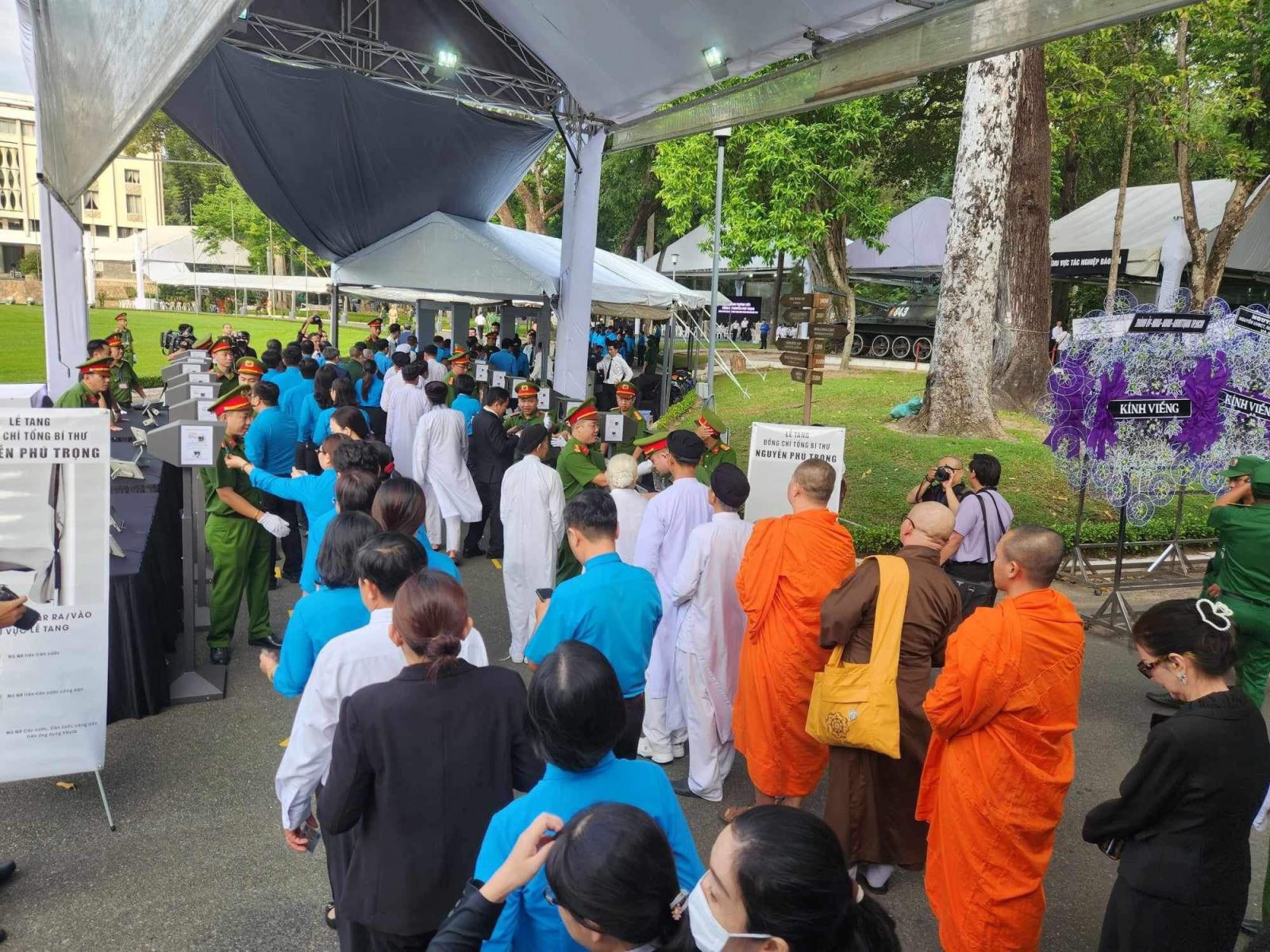 Sáng 25/7, đông đảo người dân TP Hồ Chí Minh và các tỉnh phía Nam đã có mặt từ sớm để chờ đến giờ được vào viếng Tổng Bí thư Nguyễn Phú Trọng tại Hội trường Thống Nhất (Quận 1, TP Hồ Chí Minh).