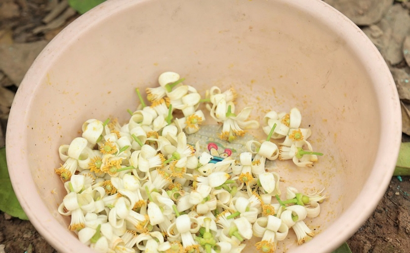 Chậu hoa bưởi đực được sử dụng để lấy phấn, phục vụ quá trình thụ phấn cho những chùm hoa bưởi cái trên cây.