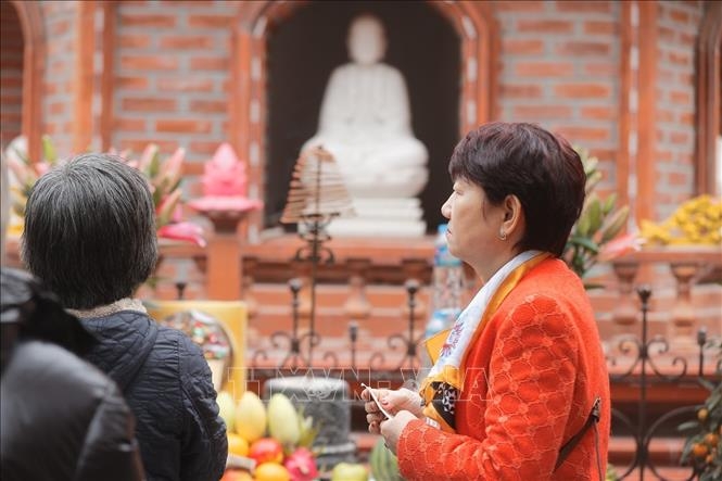 Người dân đến lễ tại chùa Trấn Quốc.