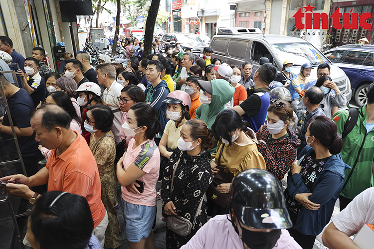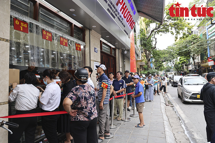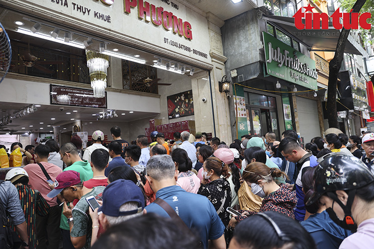 Trái với cảnh ế ẩm nhiều ngày trước, cận kề Tết Trung thu, người dân lại đổ về tiệm bán bánh Trung thu truyền thống nổi tiếng Hà Nội để xếp hàng chờ mua.