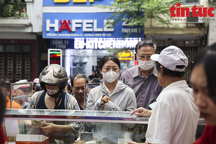Ghi nhận của phóng viên, ngày 28/9, một thương hiệu bánh trung thu truyền thống trên phố Thụy Khuê thu hút rất đông lượng khách đổ về mua hàng.