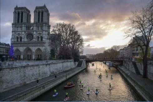 Cuộc đua thuyền trên sông Seine gần Nhà thờ Đức Bà ngày 9/12/2018.