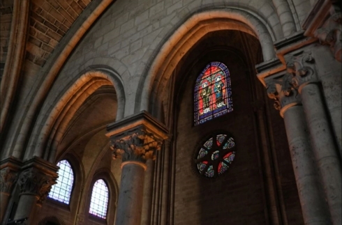 Những tấm kính màu và những ô cửa sổ vạn hoa đầy màu sắc bên trong Nhà thờ Đức Bà - biểu tượng của nước Pháp.