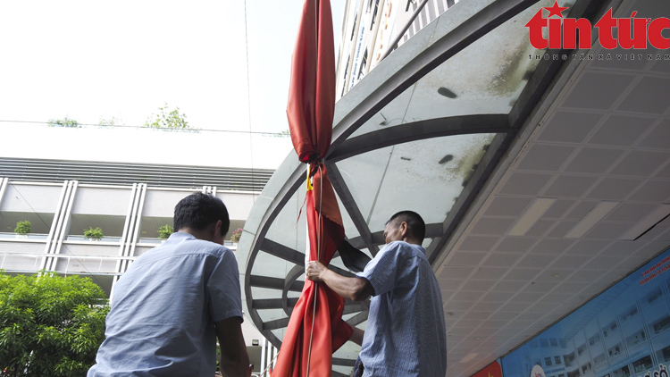 Nhiều địa phương, cơ quan đoàn thể, khu dân cư... của Thủ đô Hà Nội đã treo cờ rủ để bày tỏ niềm tiếc thương trước sự ra đi của Tổng Bí thư Nguyễn Phú Trọng.