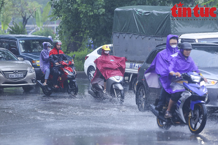 Trưa ngày 12/6, cơn mưa như trút nước sau những ngày nắng nóng, oi bức, khiến nhiều tuyến phố thuộc khu vực nội thành Hà Nội ngập cục bộ, một số tuyến đường không thể di chuyển.